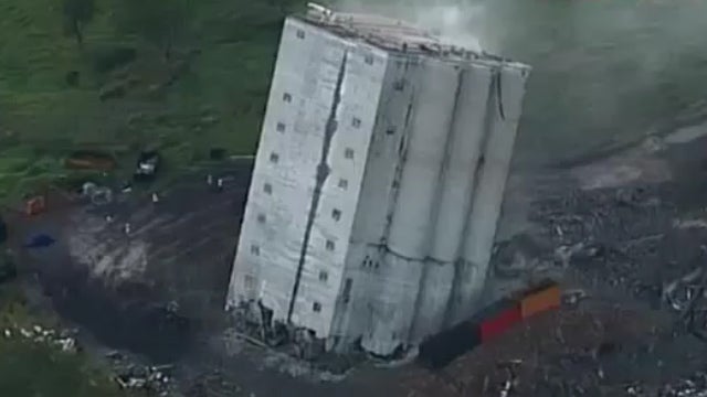 Bei der Sprengung eines 4000 Tonnen Silos in Australien hat sich der Sprengmeister wohl ein wenig verschätzt. Nach der Explosion fällt das Gebäude zunächst nicht um, sondern neigt sich nur auf die Seite. Der Silo erinnert numehr eher an den schiefen Turm von Pisa. Erst mit Hilfe von schweren Geräten kann das Bauwerk doch noch zu Fall gebracht werden.