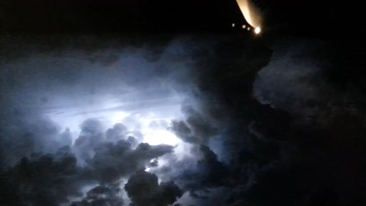 Nichts für Menschen mit Flugangst: ein Gewitter vom Flieger aus.