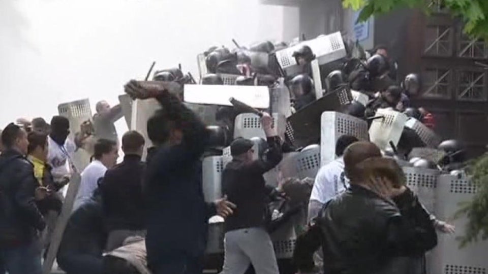 In Donesk stürmten die Gegner der ukrainischen Regierung ein weiteres öffentliches Gebäude. Dabei gingen sie mit großer Brutalität gegen die Polizei vor.