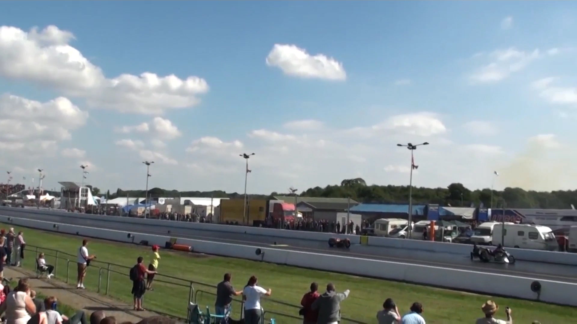 Bei einem Hochgeschwindigkeitsrennen in England stoßen zwei Biker zusammen. Mit 200km/h klammert sich der eine, ans andere Motorrad.