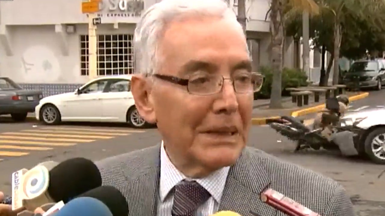 Mann wird interviewt und lässt sich durch einen Unfall nicht ablenken.