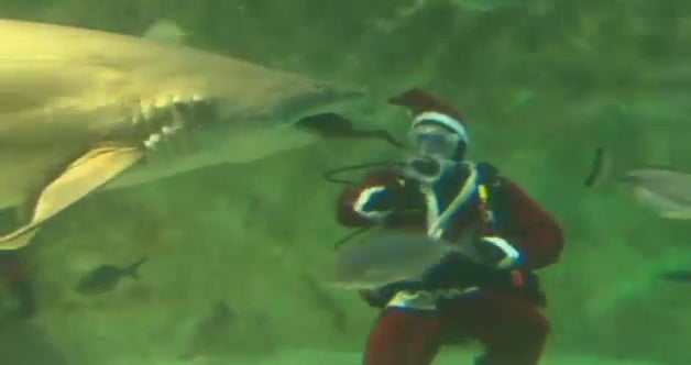 Die Haie im Oceanworld Aquarium in Sydney haben Besuch vom Weihnachtsmann bekommen. Und der hatte glücklicherweise die richtigen Geschenke dabei.