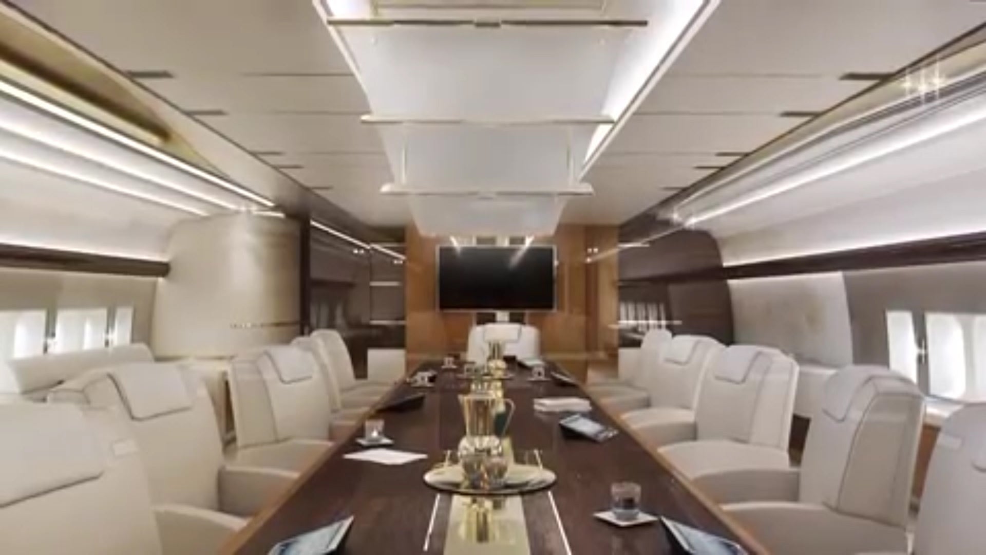 Die Boeing 747 hat mehrere luxuriöse Schlafzimmer und ein Restaurant.