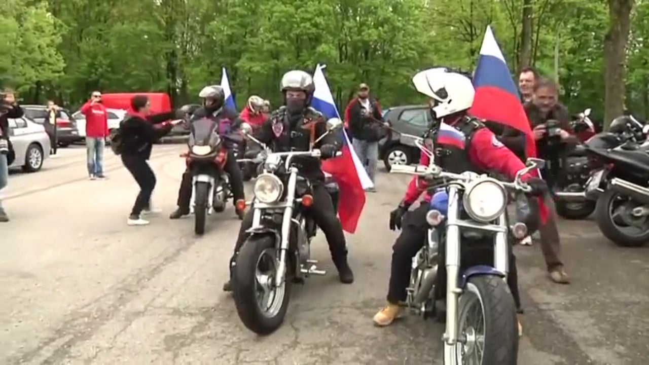 Mitglieder des kremlnahen "Nachtwölfe" fuhren an der KZ-Gedenkstätte Dachau bei München vor.