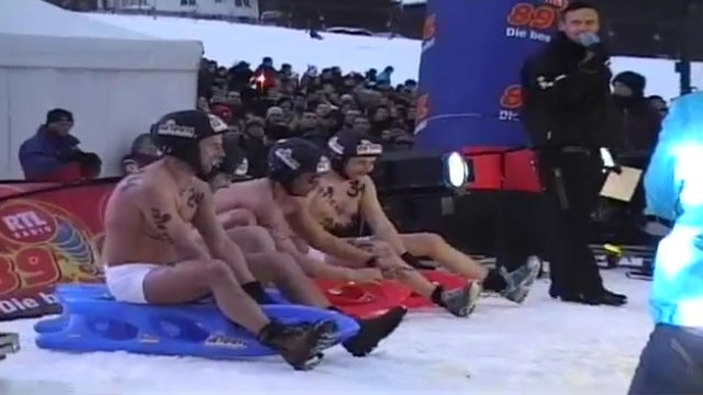 Nackt im Schnee den Berg hinunter: Bei der 4. Nacktrodel WM im Ort Braunlage im Harz ging es heiß her.