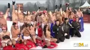 Diese jungen SchlittenfahrerInnen flitzen nur in Unterhöschen die Berge runter.