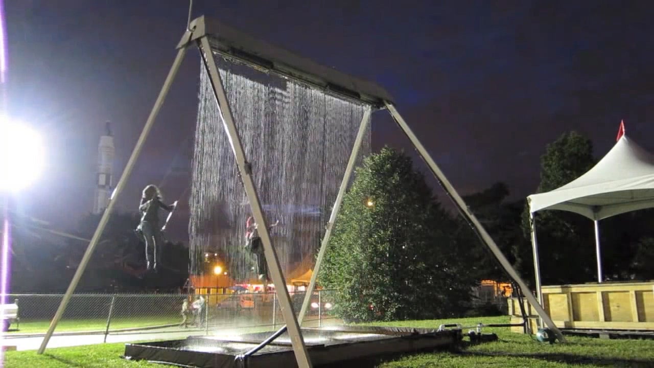 Bei dieser Schaukel wird man nass! Dafür sorgt die integrierte Wasserfalldusche.