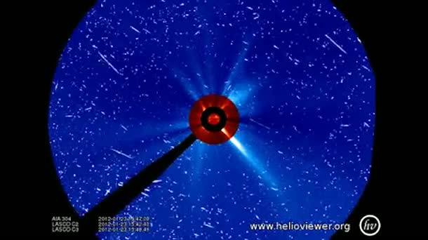 Dieses Video zeigt das Ausmaß der Partikelwolke, welche durch den Sonnensturm ins All in Richtung Erde geschleudert wurde.