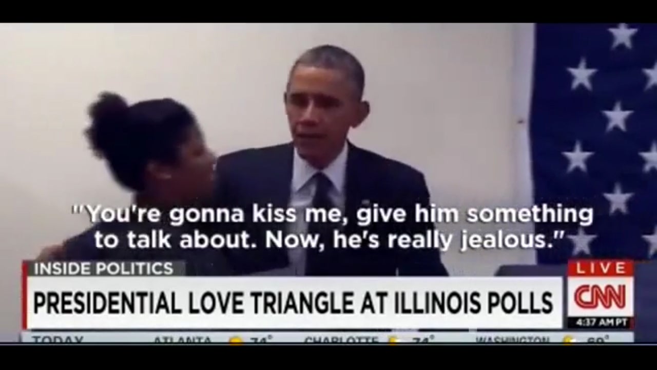 Eifersüchtiger Freund rät Obama, seine Freundin nicht zu berühren.
