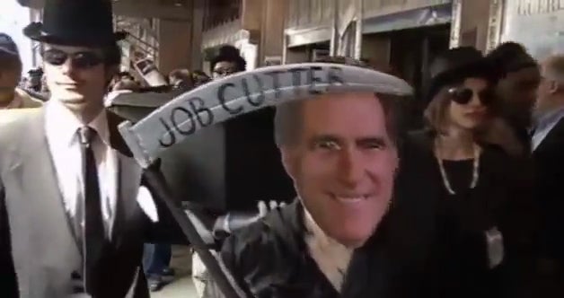 Mitt Romney als Sensenmann: Demonstranten der Occupy-Wallstreet-Bewegung machten deutlich, was sie von ihm halten.