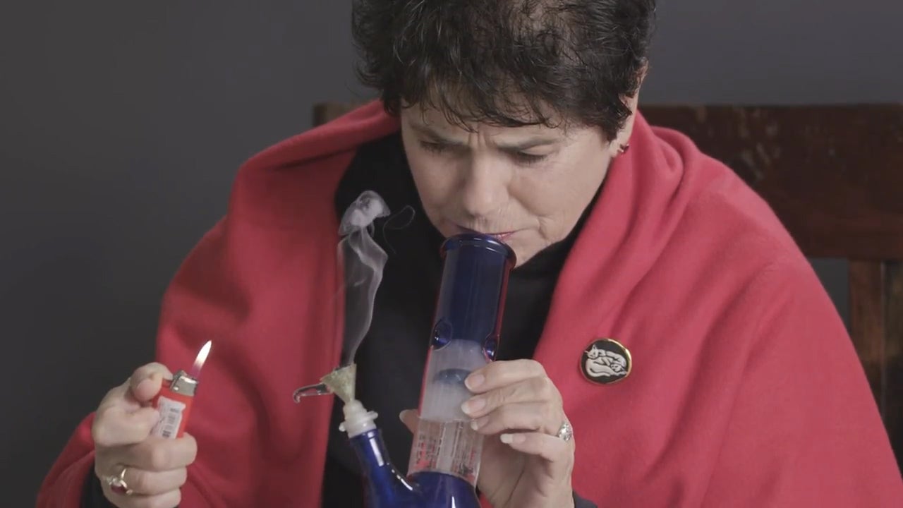 Diese alten Damen probieren das erste Mal in ihrem Leben Gras aus.