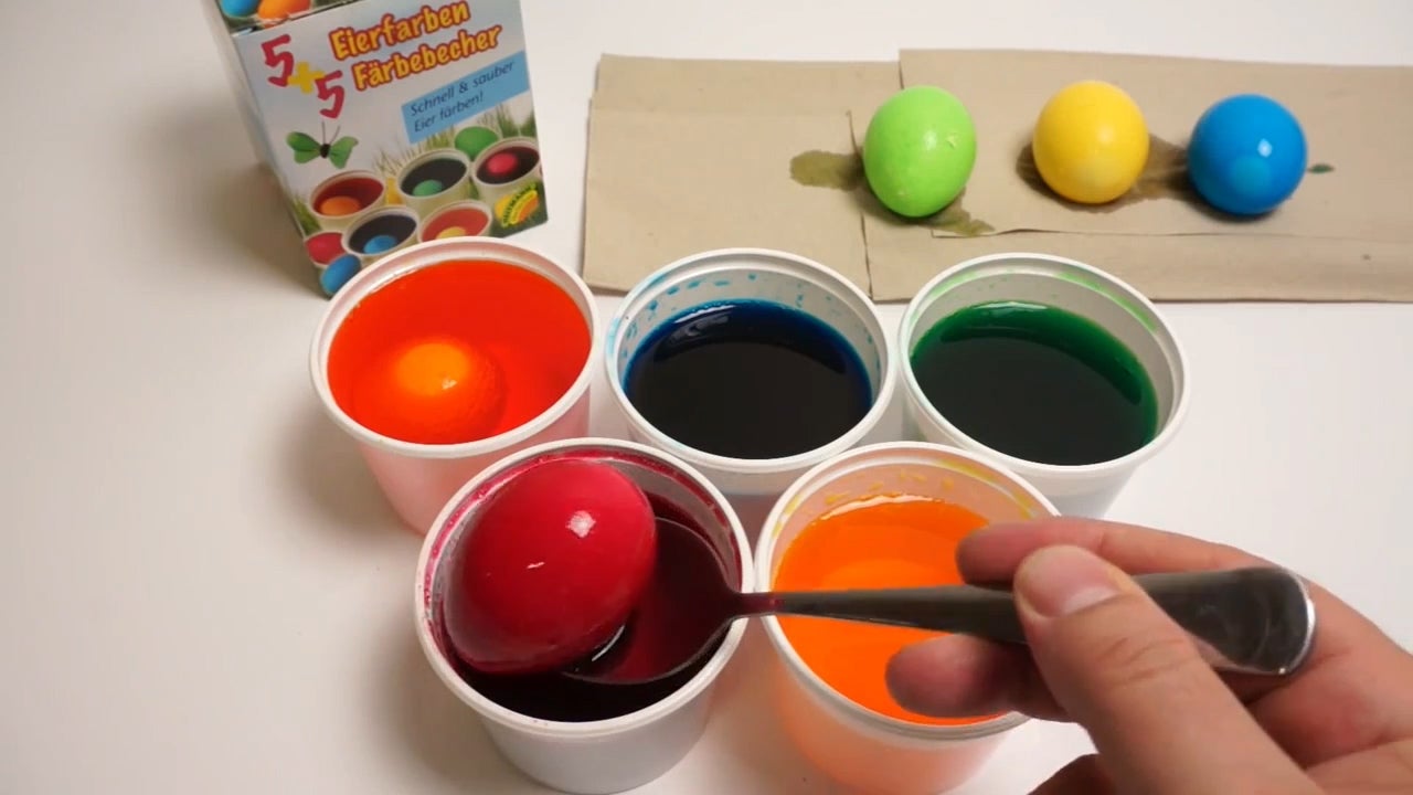 Ostereier selber färben leicht gemacht: Eierfarben und Färbebächer.