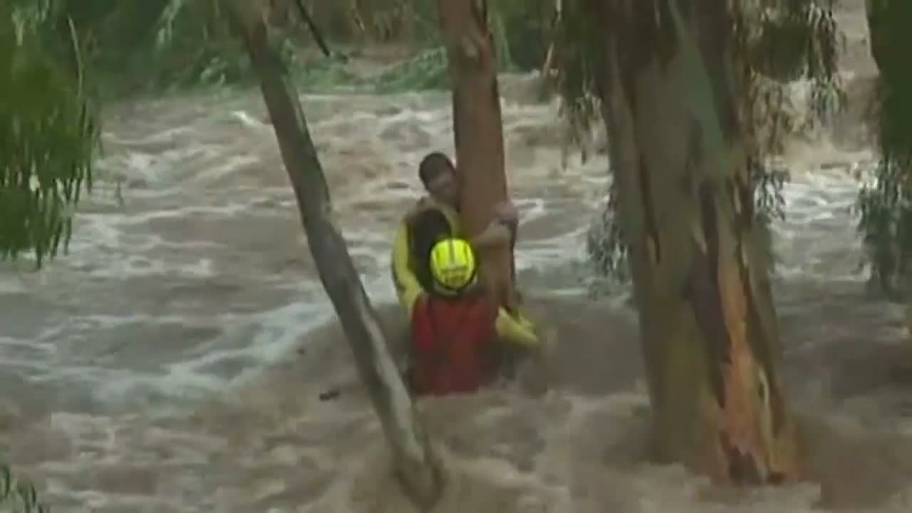 Dramatische Szenen zeigt diese Video eines Rettungseinsatzes in den australischen Fluten. Ein 14-jähriger Teenager kämpfte, an einem Baum hängend, um sein Leben.
