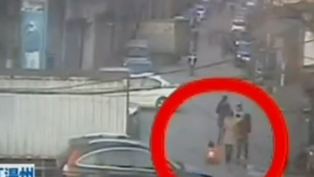 Das Video einer Überwachungkamera zeigt, wie ein Kind von einem Auto überfahren wird. Zahlreiche Passanten heben daraufhin den tonnenschweren SUV an, um das eingeklemmte Mädchen zu retten.
