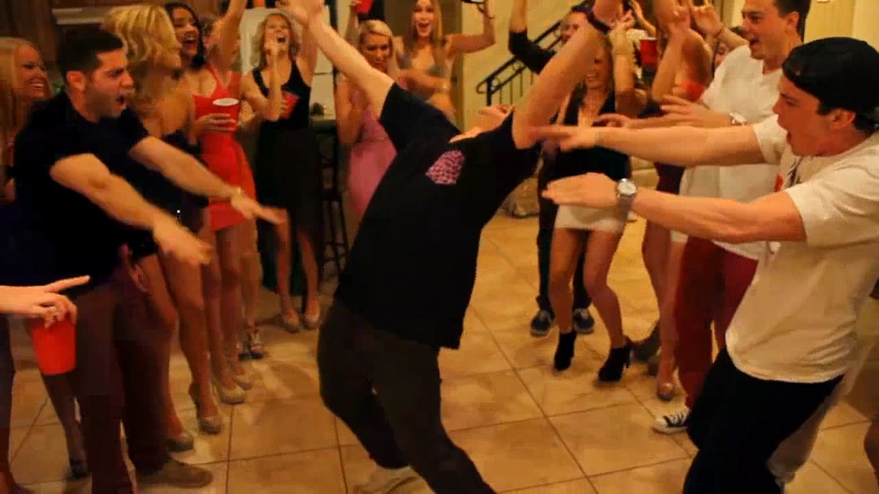Junger Mann blamiert sich auf einer Party mit einer verpatzten Tanzeinlage.