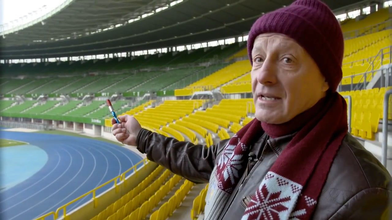 Grünen-Politiker Peter Pilz kämpft gegen Raketen im Fußball-Stadion.