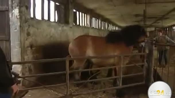 Vor lauter Aufregung über die bevorstehende Reise auf eine Naturschutzinsel schlägt dieses Pferd einen ungewollten Salto.