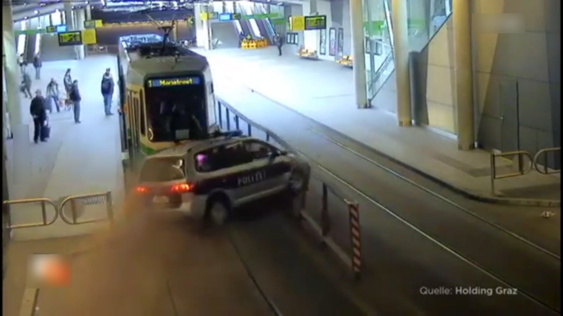 Bei der Verfolgung eines Flüchtigen kollidierte ein Polizeiauto mit einer Bim.