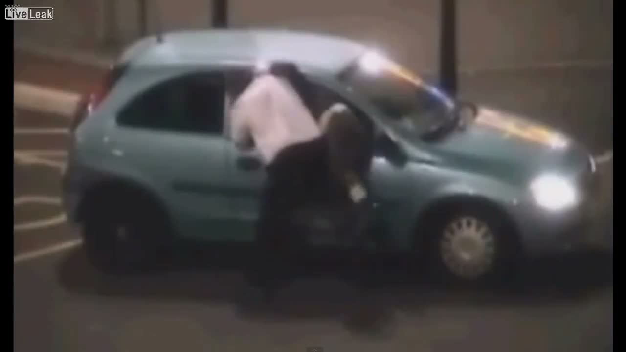 Ein nun veröffentlichtes Überwachungsvideo beweist die schweren Vorwürfe gegen einen Polizisten im britischen Leicester. Er soll Nick Parsons, den leicht betrunkenen Fahrer dieses Autos, geschlagen und durch das Fenster auf die Straße gezogen haben.