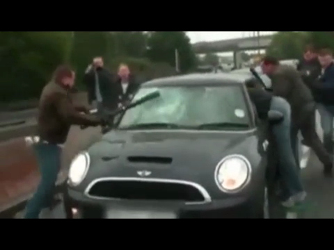 Sechs Polizisten, in Enfield, Nord-London, demolieren den Wagen eines Verdächtigen mit Baseballschlägern.
