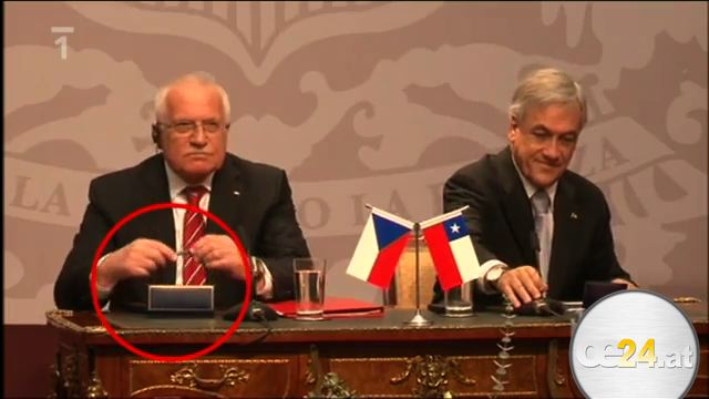 Vaclav Klaus stiehlt sich vor laufender Kamera einen Kugelschreiber. Und das während seines Staatsbesuches in Chile.