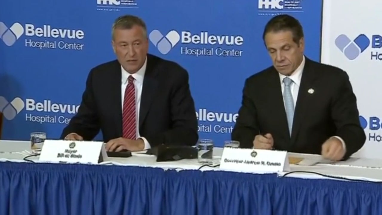 New Yorks Bürgermeister hält wegen eines Ebola Patienten eine Pressekonferenz.