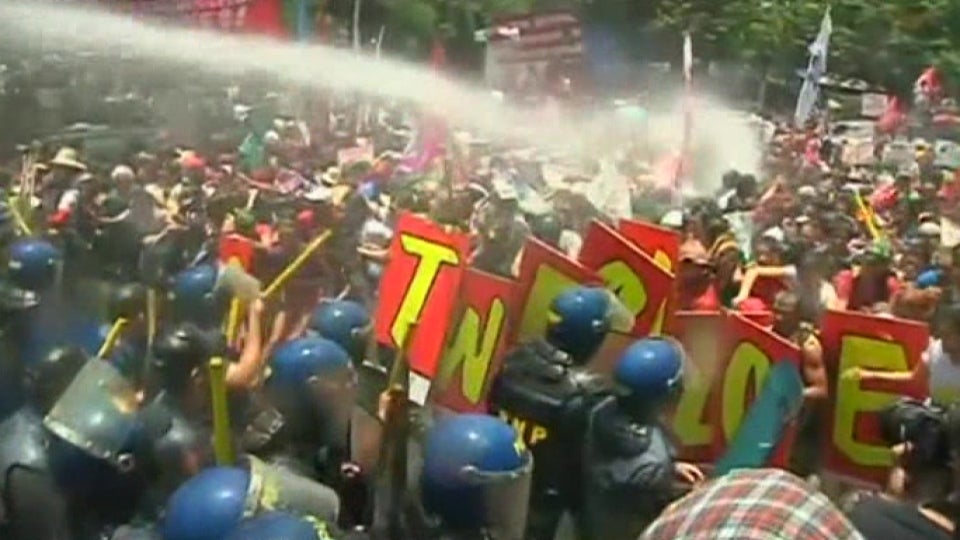 Der Unmut der Demonstranten richtet sich gegen ein Verteidigungsabkommen zwischen den USA und den Philippinen, das anlässlich des Besuchs von Obama besiegelt worden war.