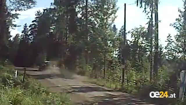 Bei der Neste Oil Rally in Finnland gehts ordendlich zur Sache. Dieser Fahrer springt nach einer Schikane fast zehn Meter weit.