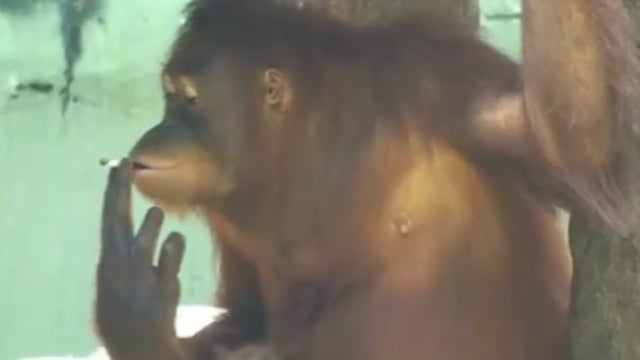 Weil sie im Zoo ständig geraucht hat, ist eine Orangutan-Dame in einem Zoo in Indonesien nun auf eine einsame Insel verbannt worden.
