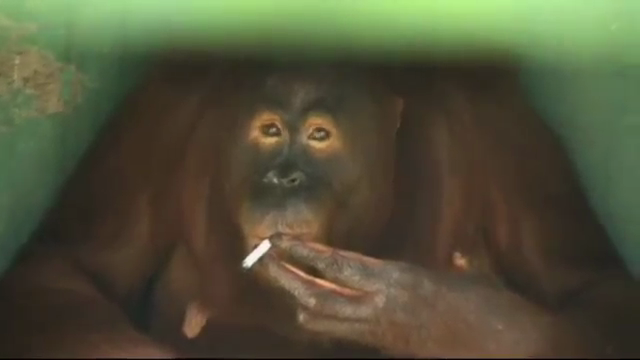 Eine Orang-Utan-Dame aus einem indonesischen Zoo, das zum Vergnügen der Zoobesucher in den Käfig geworfene Zigaretten rauchte, muss auf Entzug. Nach Angaben ihres Wärters rauche Tori, seit sie fünf Jahre alt sei. Bereits ihre Eltern seien starke Raucher gewesen.