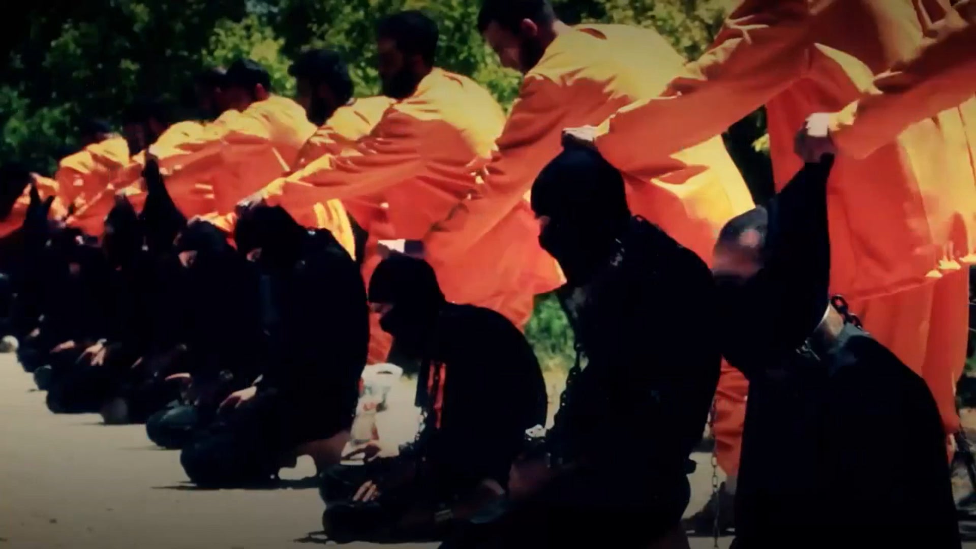 Syrische Rebellen übten in orangen Overalls Vergeltung für IS-Gräuel.