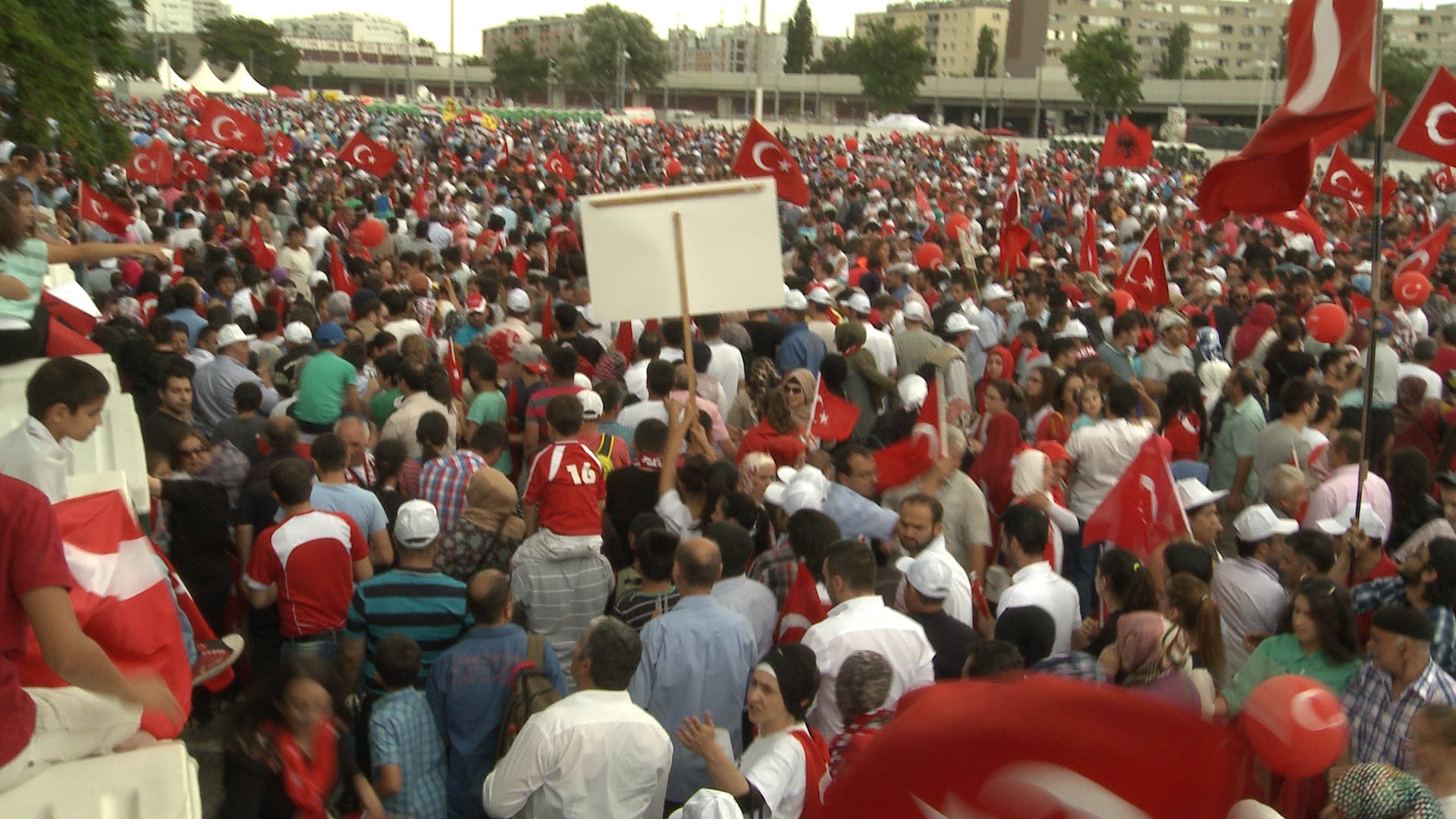 Tausende kommen vor die Albert Schulz Halle, um Premier Erdogan zu sehen. OE24-Reporter Manuel Tunzer war Vorort. Eine Reportage über Trennendes, Verbindendes, Hoffnung und Angst.