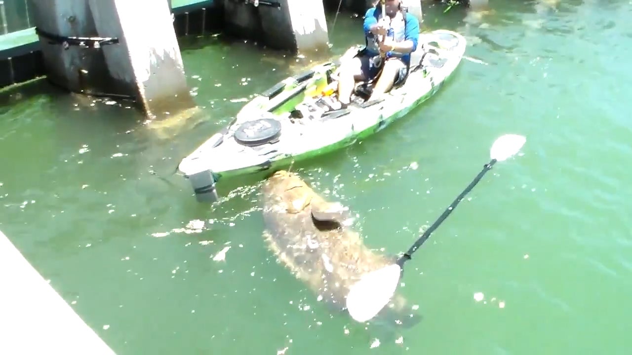 Dieser glückliche Kajakfahrer fängt einen 500 Pfund schweren Monsterbarsch.