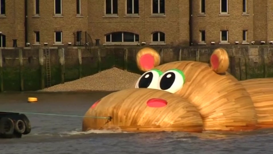 Der niederländische Künstler Florentijn Hofmann hat ein riesiges Holz-Hippo entworfen.