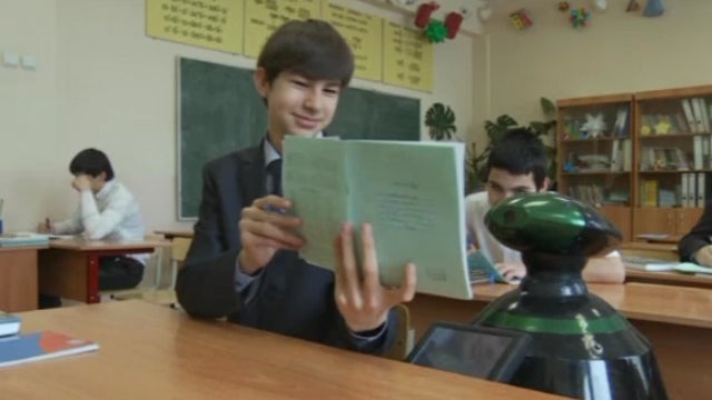 Evgeny ist herzkrank und kann deswegen nicht jeden Tag zur Schule. Deshalb hat der 16-Jährige einen kleinen Roboter, der für ihn am Unterricht teilnimmt.