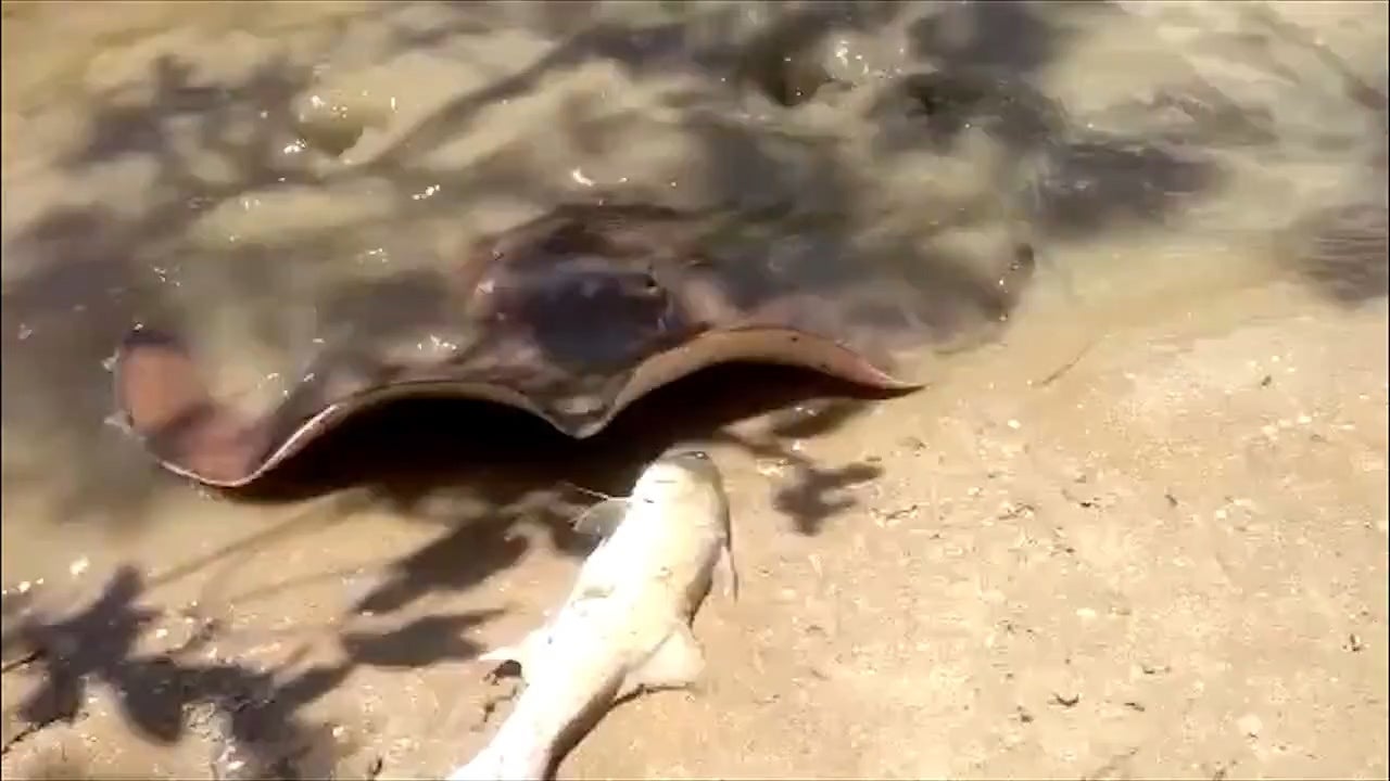 Dieser Rochen kommt an Land um einen Riesen-Fisch zu verschlingen.