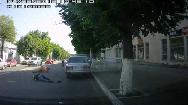 Das nun veröffentlichte Videomaterial zeigt wie ein Motorradfahrer einen Polizisten rammt und anschließend den bewusstlosen Ordnungshüter auf der Straße liegen lässt. Der Vorfall ereignete sich Anfang April in Russland.