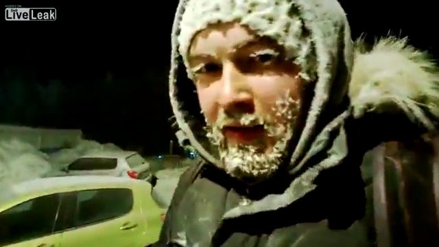 Der Gefrierpunkt für Vodka liegt bei etwa minus 25 Grad. Dennoch trinken selbst bei frostigen minus 38 Grad Celsius diese russischen Männer ihren Vodka, der allerdings nur noch mit Mühe in die Gläser zu befördern ist und wohl ebenso mühevoll im Magen landet. Zumindest lassen dies die Gesichter vermuten.