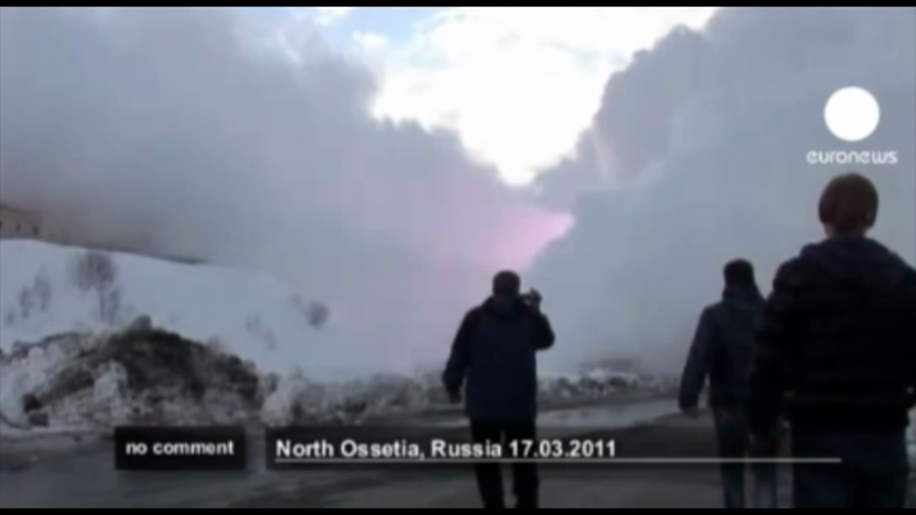 In Russland werden nunmal Lawinen mit Kanonen kontrolliert ausgelöst. Über den Weg, den die Lawine danach einschlagen wird, haben sich die Herren von der Armee anscheinend kein Gedanken gemacht...