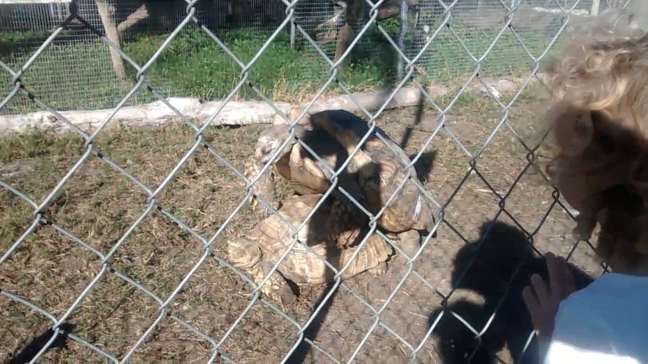 Diese zwei Schildkröten vergnügen sich vor den Augen der Besucher.