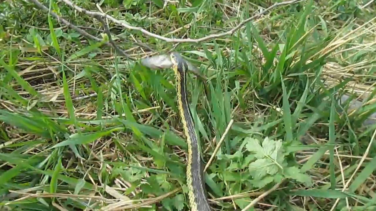Gerade erst einen Fisch gefangen, schnappt ihn sich die Schlange plötzlich.
