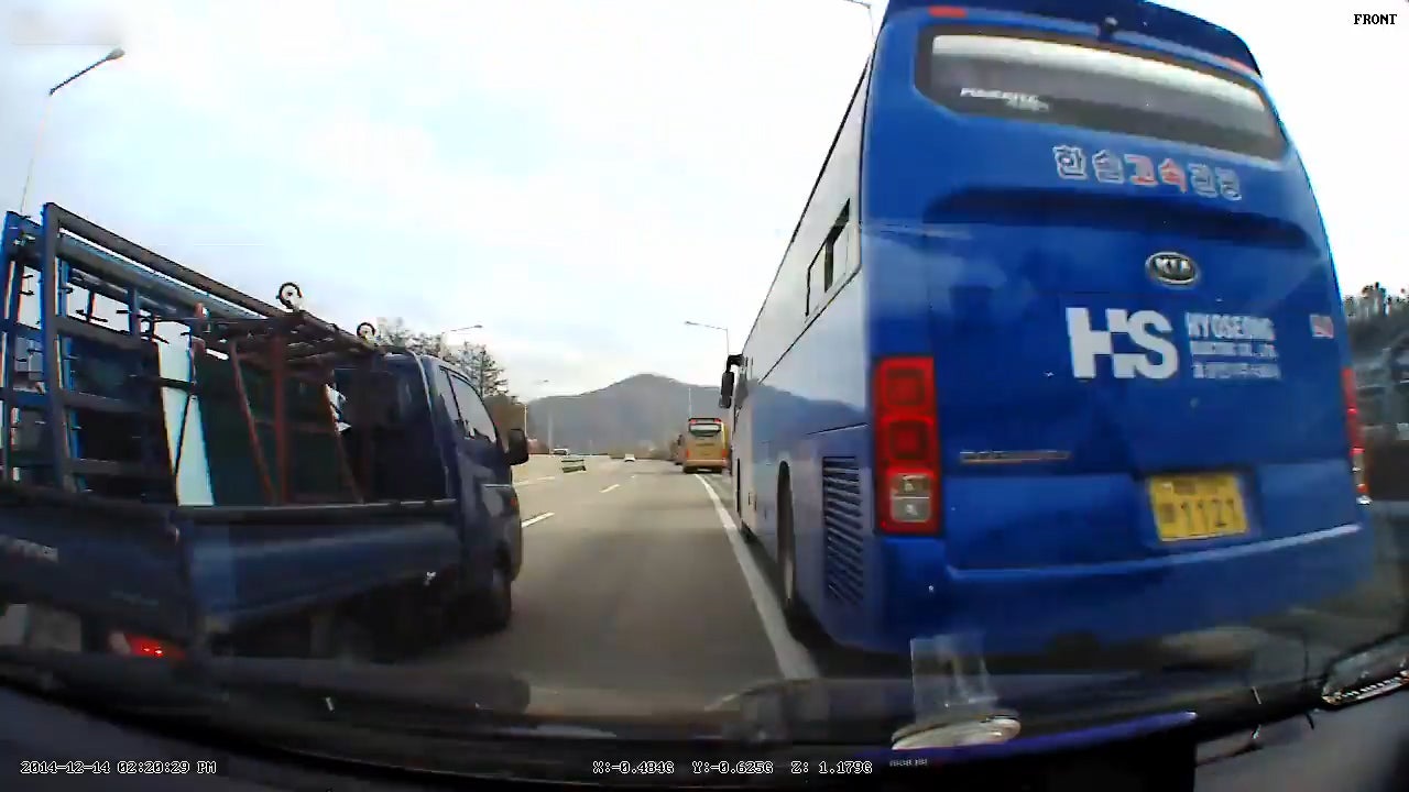 Auto wird abgedrängt und fährt mit voller Geschwindigkeit in einen Bus.