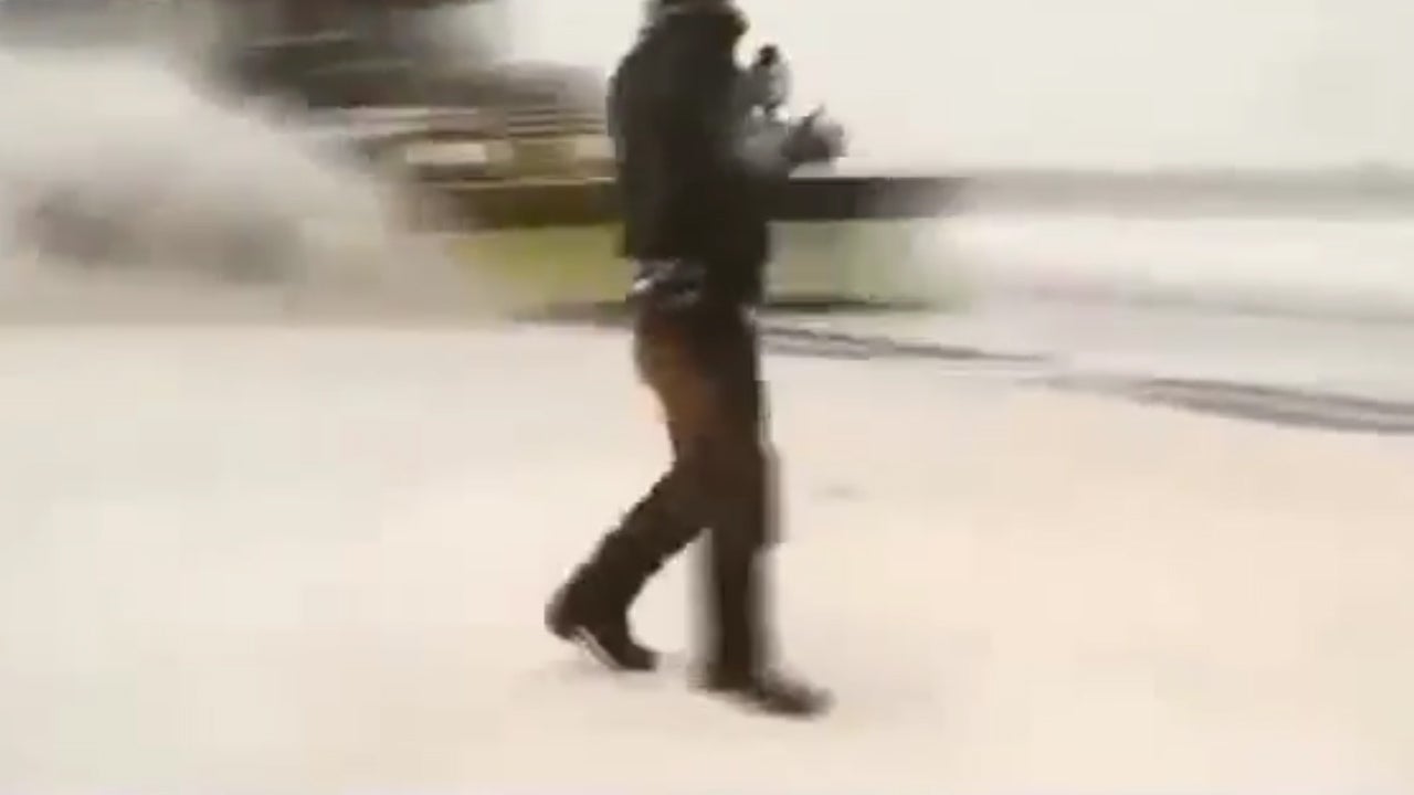 Eigentlich sollte der Moderator Steve Keeley nur vom Schneechaos berichten, doch plötzlich wird er ungewollt Teil davon.