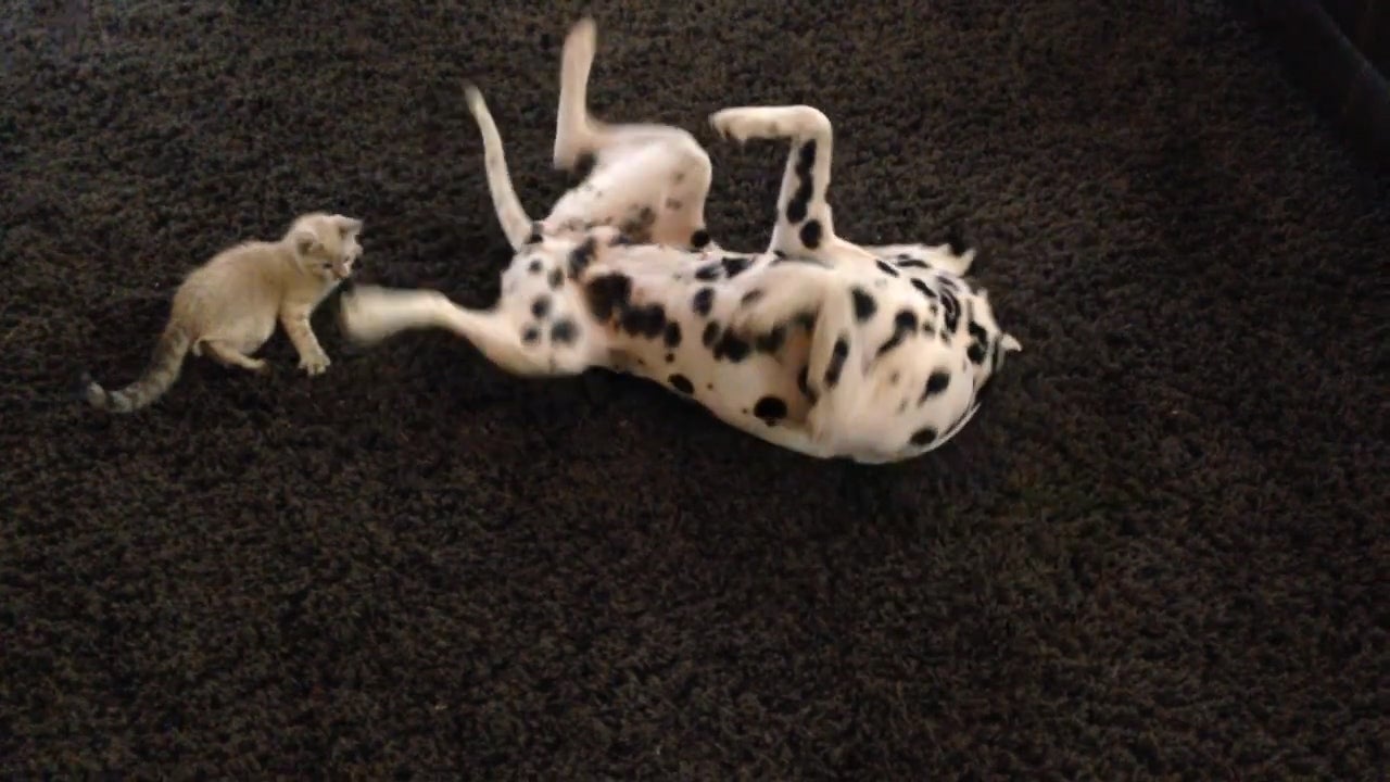 Diese kleine Katze fand mit dem Schwanz eines Dalmatiners ihr neues Lieblingsspielzeug.