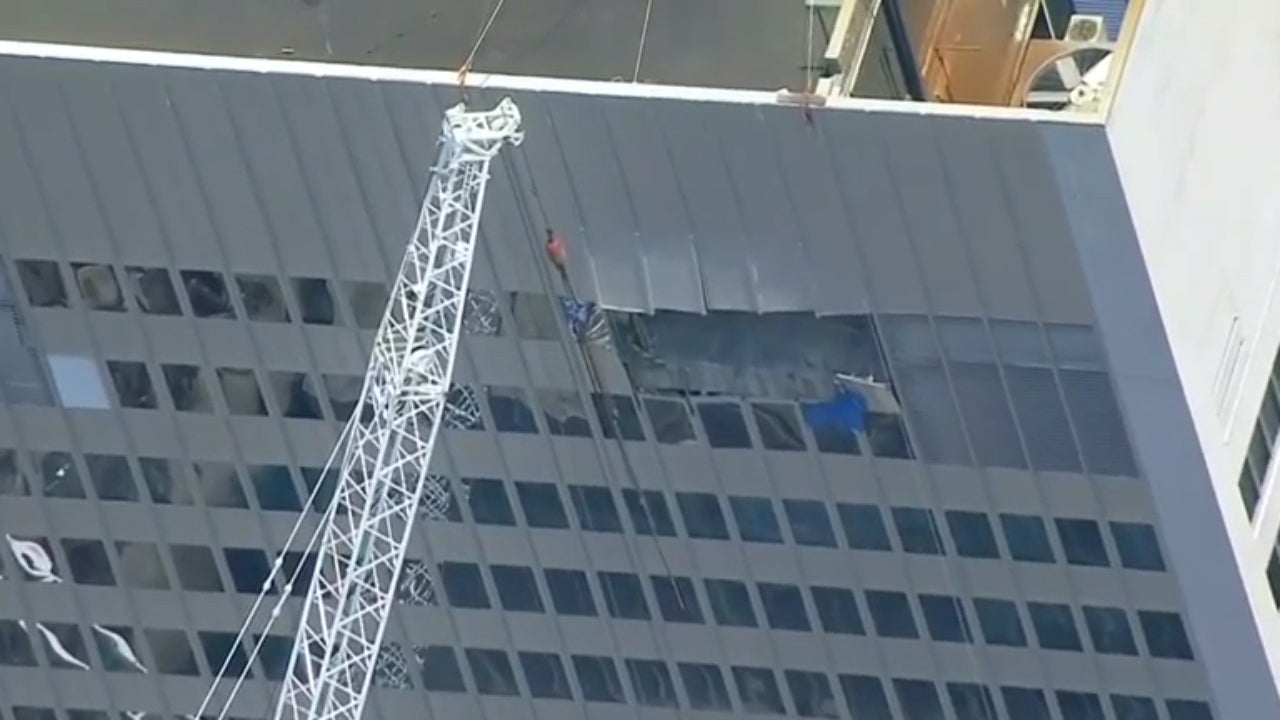 Kran verlor seine Last in der obersten Etage eines 30-stöckigen Hochhauses.