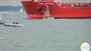 Dramatische Sekunden bei der englischen Segelregatta Cowes Week. Eine kleine Segelyacht kam dort einem riesigen Supertanker zu nahe und kollidierte schließlich mit ihm.