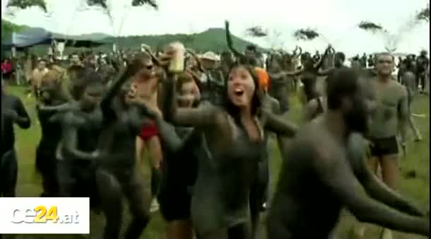 Abseits des Karnevals in Rio geben sich hunderte in Paraty eine Schlammschlacht am Strand.