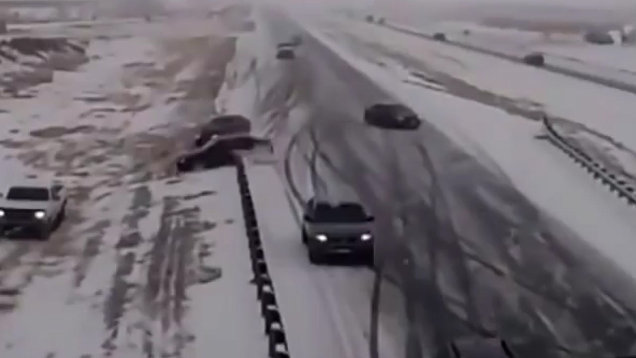 Mit der Straßenglätte gar nicht zurecht kommen offenbar US-Amerikaner, wie dieses Video zeigt.