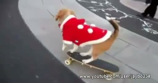 Dieser Hund hat's drauf! Mit Weihnachtsjacke skatet der geschickte Vierbeiner im Kreis.
