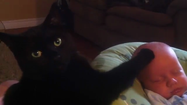 Weshalb sollte man Unmengen für einen Babysitter ausgeben, wenn es die eigene Katze auch kann.